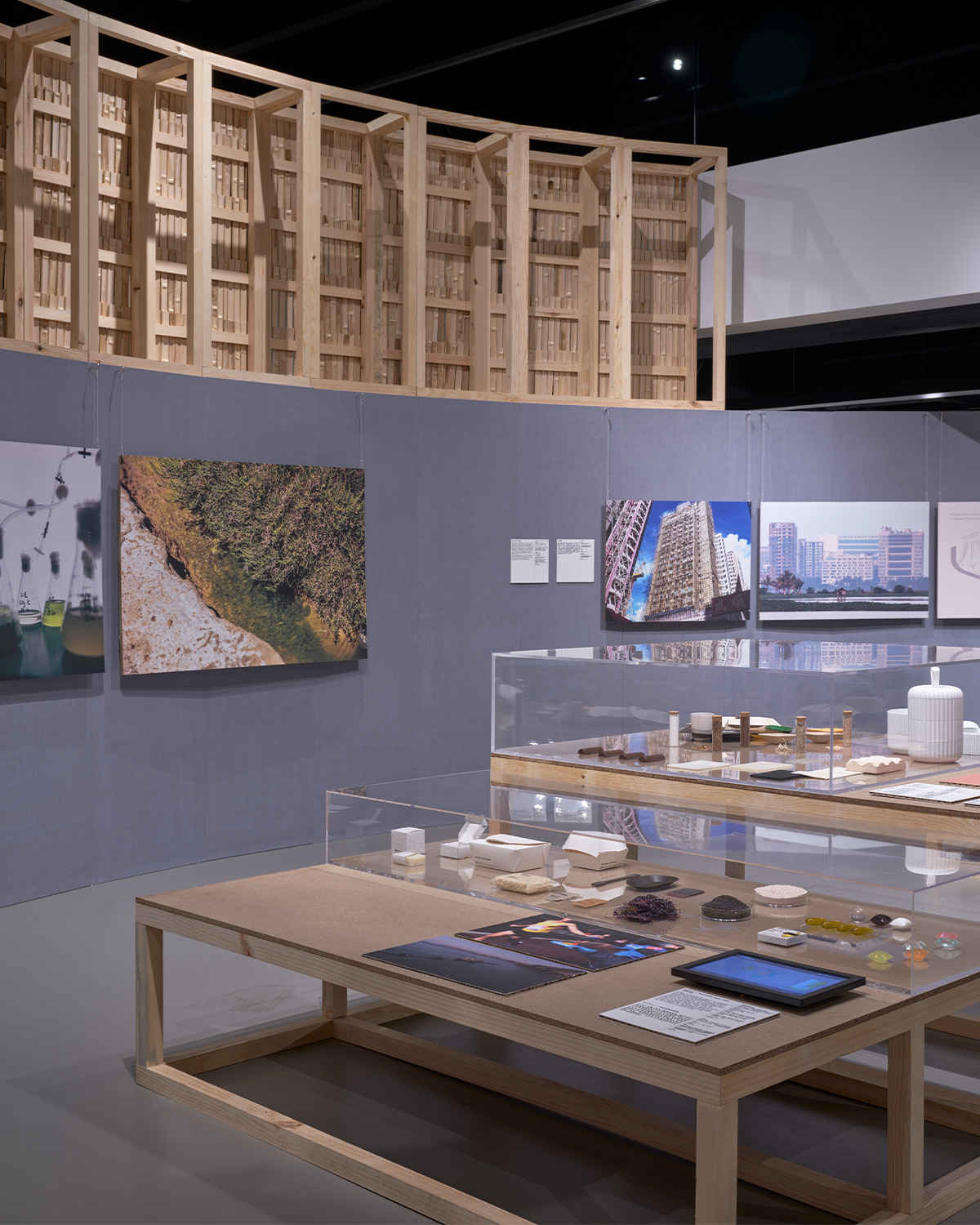 Waste Age at the Hong Kong Design Institute is an exhibition examining the role of design in tackling the critical problem of waste and its environmental consequences across the globe. Material Cultures acted as spatial designers for the exhibition. The design is a critique of our ‘take, make, waste’ economy, and design’s role in the problem. It explores how design can transform our waste into valuable resources, promote new ways of living with the earth rather than from it, and an ideal world where there is no such thing as waste. The proposal uses biobased, regenerative resources, which are carefully detailed to allow re-use at the conclusion of the exhibition.