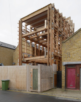 This self build project was designed closely with the client. Shown under construction the monolithic 3 story timber and hempcrete building houses a textiles workshop and two apartments enclosing a raised external courtyard. The approach to massive construction was based on the carbon sequestering capacity of the materials used – the more mass the more carbon was captured. The building is highly flexible, capable of being occupied as three independent units or as one integrated home and studio.