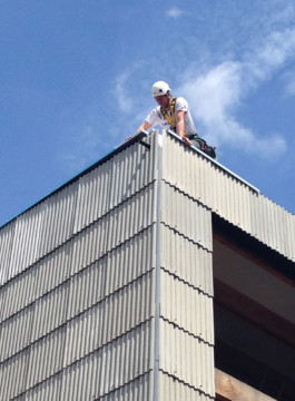 The frame, floors and skirting boards are all constructed using the same section of timber. These sections are overscaled to allow for charring without the need for intumescent coatings. The large section size also allows for a hybrid balloon / portal frame system with 1.2m column centres and floor boards spanning as far as 1m. The thickness of these floorboards means that they act structurally as well as providing acoustic insulation, thermal insulation, and fire resistance between floors, thus eliminating the need for a soffit.